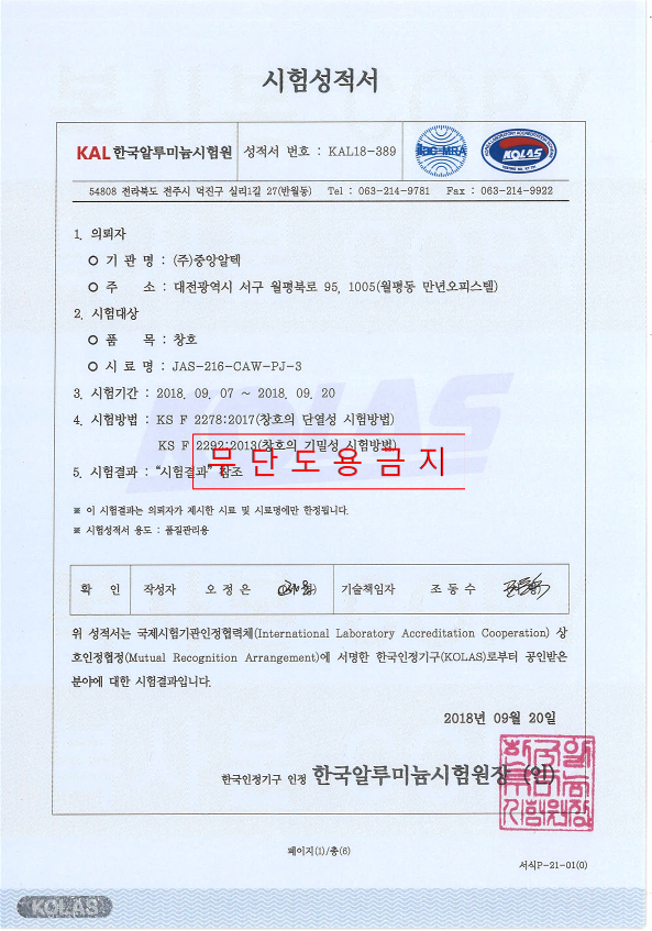 시험성적서 | 시험성적서 - JAS-216-CAW-PJ-3 페이지 정보 작성자 중앙알텍 작성일20-06-25 16:13 조회12,445회 댓글0건 첨부파일 10. JAS-216-CAW-PJ-3단열,기밀0.858.pdf (1.0M) 64회 다운로드 DATE : 2020-06-29 15:21:33 관련링크 이전글 다음글 목록 본문 JAS-216-CAW-PJ-3 댓글목록 등록된 댓글이 없습니다. 이전글 다음글 목록
