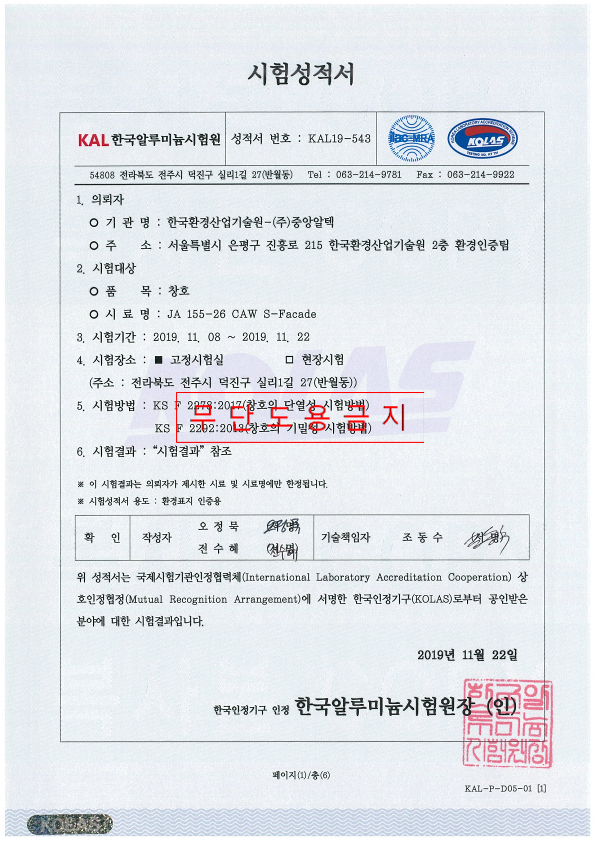 시험성적서 | 시험성적서 - JA 155-26 CAW S-Facade 페이지 정보 작성자 중앙알텍 작성일20-06-25 16:19 조회12,464회 댓글0건 첨부파일 15. JA 155-26 CAW S-Facade단열,기밀1.186.pdf (1.3M) 68회 다운로드 DATE : 2020-06-29 15:25:05 관련링크 이전글 다음글 목록 본문 JA 155-26 CAW S-Facade 댓글목록 등록된 댓글이 없습니다. 이전글 다음글 목록