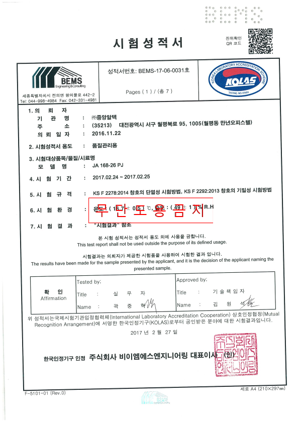 시험성적서 | 시험성적서 - JA 168-26 PJ 페이지 정보 작성자 중앙알텍 작성일20-06-25 16:34 조회12,666회 댓글0건 첨부파일 17. JA 168-26 PJ단열,기밀1.383.pdf (642.6K) 86회 다운로드 DATE : 2020-06-29 15:26:11 관련링크 이전글 다음글 목록 본문 JA 168-26 PJ 댓글목록 등록된 댓글이 없습니다. 이전글 다음글 목록