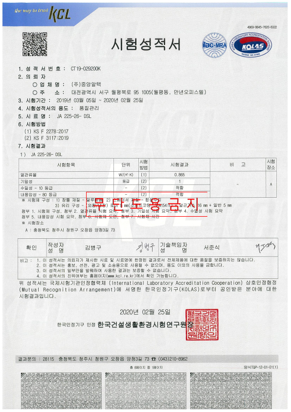 시험성적서 | 시험성적서 - JA 225-26 DSL 페이지 정보 작성자 중앙알텍 작성일20-06-25 16:37 조회12,549회 댓글0건 첨부파일 14. JA 225-26 DSL단열,기밀0.865.pdf (721.1K) 84회 다운로드 DATE : 2020-06-29 15:24:27 관련링크 이전글 다음글 목록 본문 JA 225-26 DSL 댓글목록 등록된 댓글이 없습니다. 이전글 다음글 목록